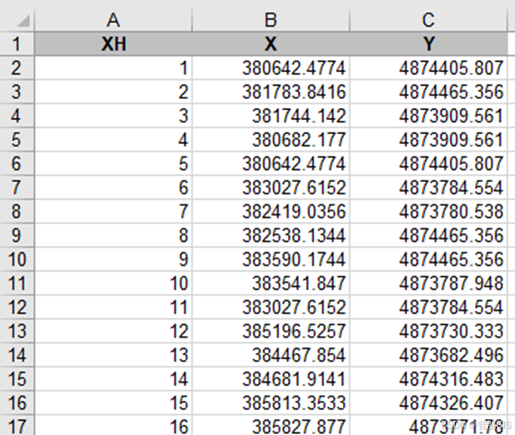样例数据非涉密,随即生成坐标,以xls文件为例,展示具体过程。注意:X坐标6位或者8位,Y坐标7位。