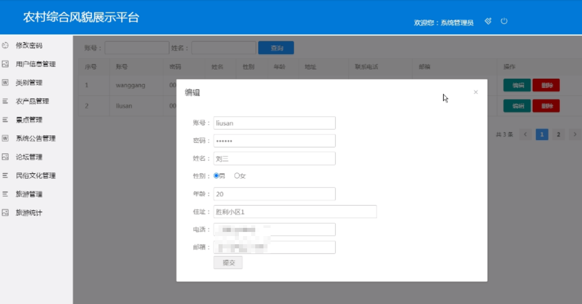 用户信息管理:针对平台的所有注册用户,管理员可以进行维护管理。
