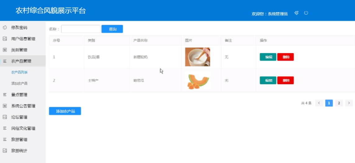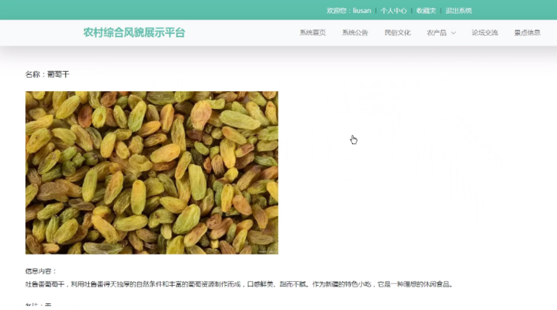 农产品管理:后台针对农产品进行添加后,前台用户就可以看到农产品的信息了。