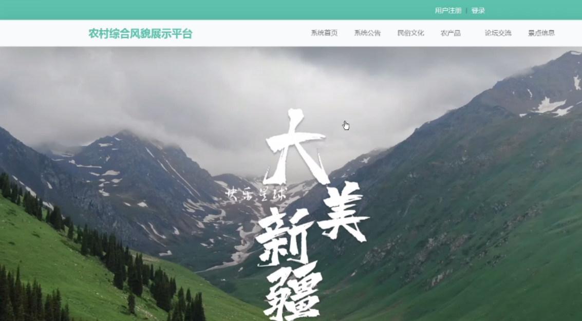 系统首页:通过系统首页将农村综合风貌进行展示,对新疆农村地区的美景、美食等做宣传。