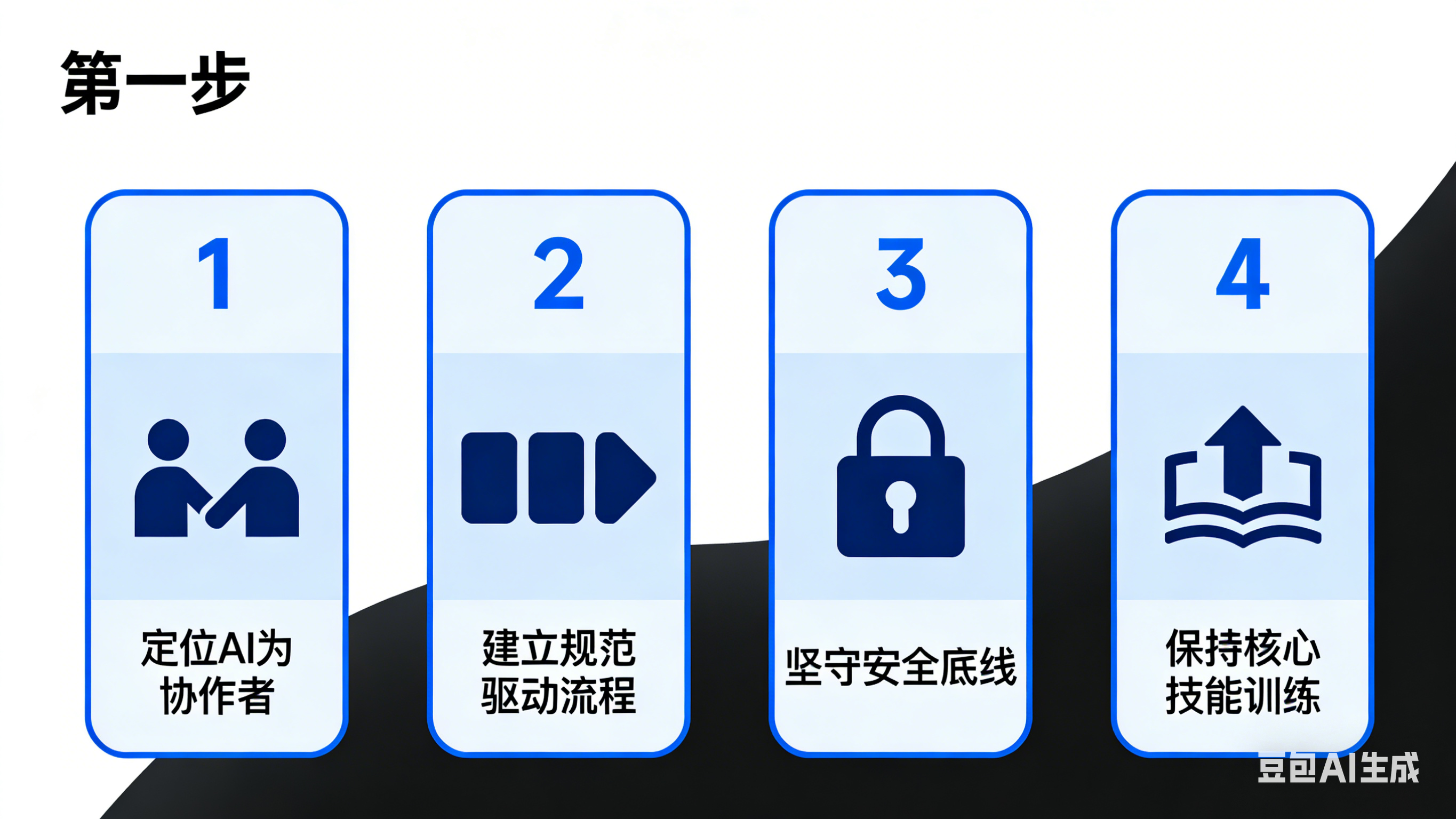 用AI加速"重复性工作"(如样板代码生成、测试用例编写),将精力聚焦于架构设计、业务逻辑创新。