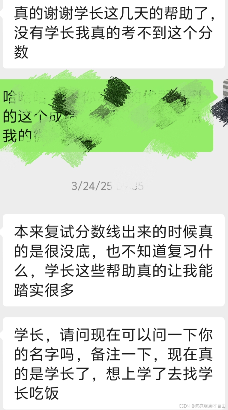 恭喜学弟学妹们闯下考研最难的一关-初试,现在可以先休息一个周好好放松一下,好好过接下来的辅导,然后在准备接下来的复试。只要估分觉得有机会进复试都一定要好好准备,只要进面就有机会。我是24年的华工软院上岸学长,去年也接过几个复试,图片中有一个就是压线进复试最终被录取的,所以都有机会的,如果大家有什么问题或者需要复试辅dao的,可以私聊我。下面是具体辅导内容: