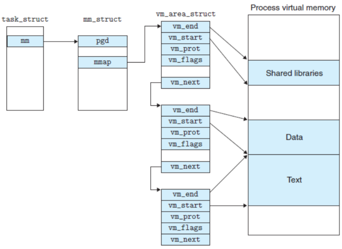 - 前面提到虚拟地址空间也是由结构体mm_struct所描述起来的,那么这个mm_struct里面存储的是什么东西?核心是虚拟地址空间中每个分区的起始地址和结束地址。