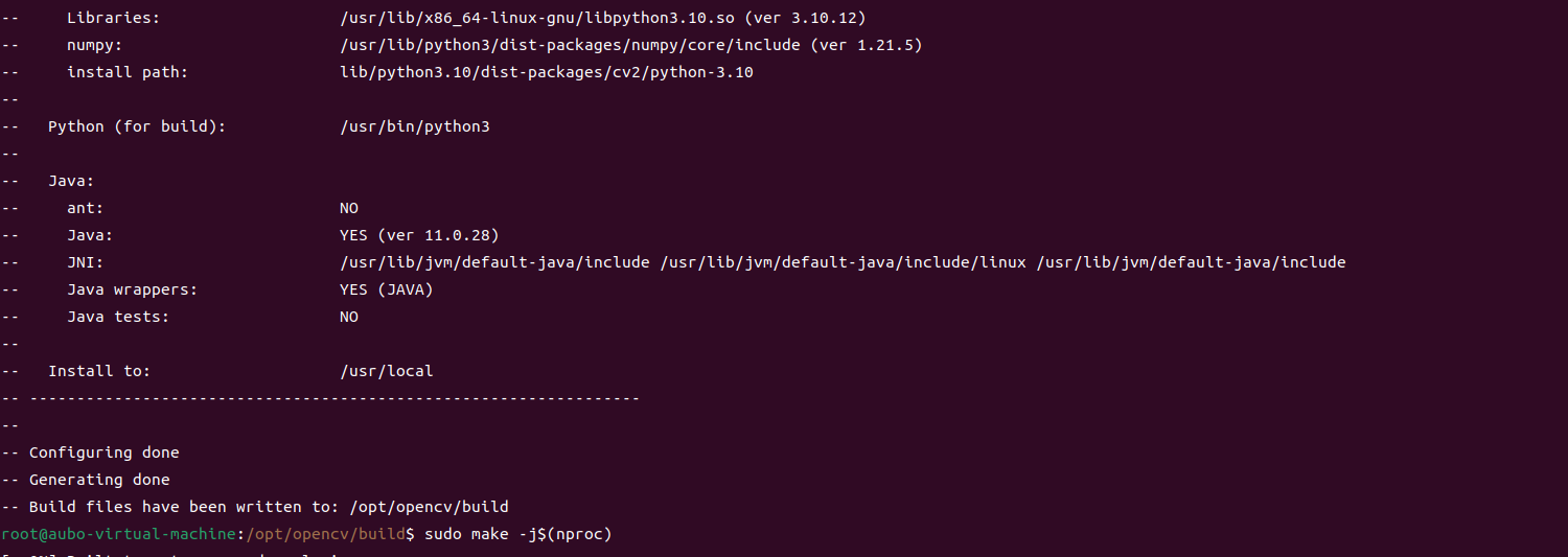 -D CMAKE_INSTALL_PREFIX=/usr/local:指定安装路径为系统目录。-D OPENCV_GENERATE_PKGCONFIG=ON:生成 pkg-config 文件,极大方便后续自己开发项目时链接 OpenCV。-D OPENCV_EXTRA_MODULES_PATH=...:非常重要,指向 contrib 模块目录,确保编译进额外的 DNN 等功能。BUILD_EXAMPLES=OFF:不编译例子,加快速度。WITH_CUDA=OFF:默认不启用 CUDA。如果你有 Nvidia GPU 并已安装好 CUDA 驱动和工具包,可以将其改为ON以加速 DNN 推理。