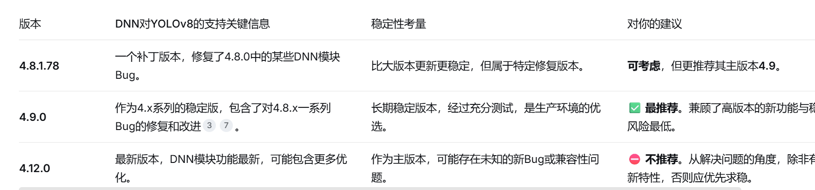 由于项目需要,Ubuntu Jammy(22.04 LTS)的官方仓库的OpenCV4.5.4版本太旧了,DNN模块存在不少问题。无法满足通过OpenCV 4.8以上版本DNN模块使用YOLOv8 pt转换到ONNX模型的需求。权衡利弊之下,干脆选择升级到4.9.0版本。记录一下升级遇到的坑。
