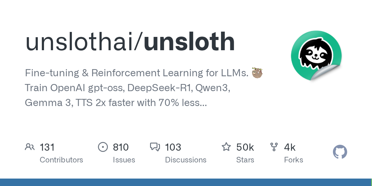 - 🔗 项目地址: https://github.com/unslothai/unsloth