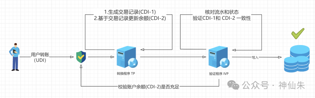 对账程序(IVP)检查账户余额(CDI-2)等关键数据是否处于合法状态(是否冻结,余额充足等);