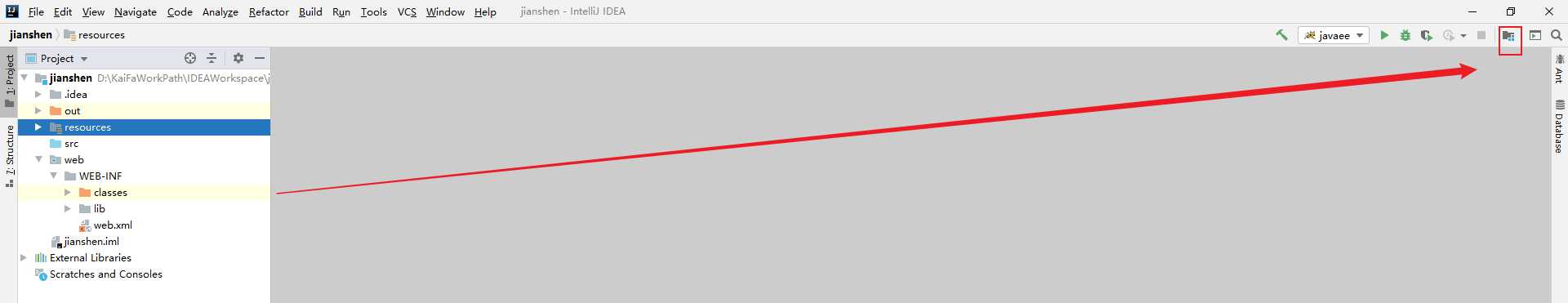 step6:创建完两个文件夹后我们再进行配置,也就是告诉编辑器lib和classes存放的位置。点击快捷键Ctrl+Shift+Alt+S或者点击图中的快捷按钮