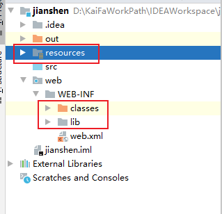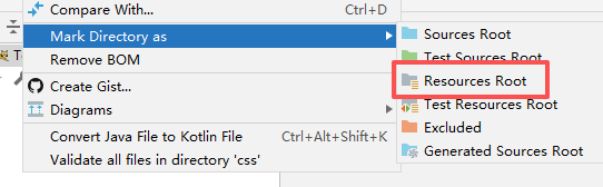 上图中resources也是自己创建的一个普通目录,在idea中选中目录收mark后的。