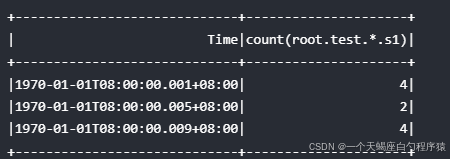 和标签聚合相比,基于时间区间的标签聚合的查询会首先按照时间区间划定聚合范围,在时间区间内部再根据指定的标签顺序,进行相应数据的聚合计算。在输出的结果集中,会包含一列时间列,该时间列值的含义和时间区间聚合查询的相同。