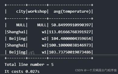 例如,统计每个城市的每个车间内设备的平均温度。但因为各个城市的车间名称有可能相同,所以不能直接按照 workshop 做标签聚合。必须要先按照城市,再按照车间处理。