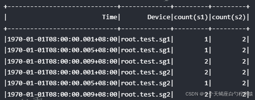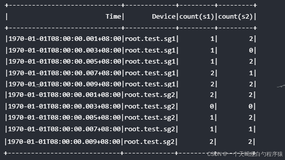 - 标签聚合查询除了输出聚合结果列,还会输出聚合标签的键值列。该列的列名为聚合指定的标签键,列的值则为所有查询的时间序列中出现的该标签的值。