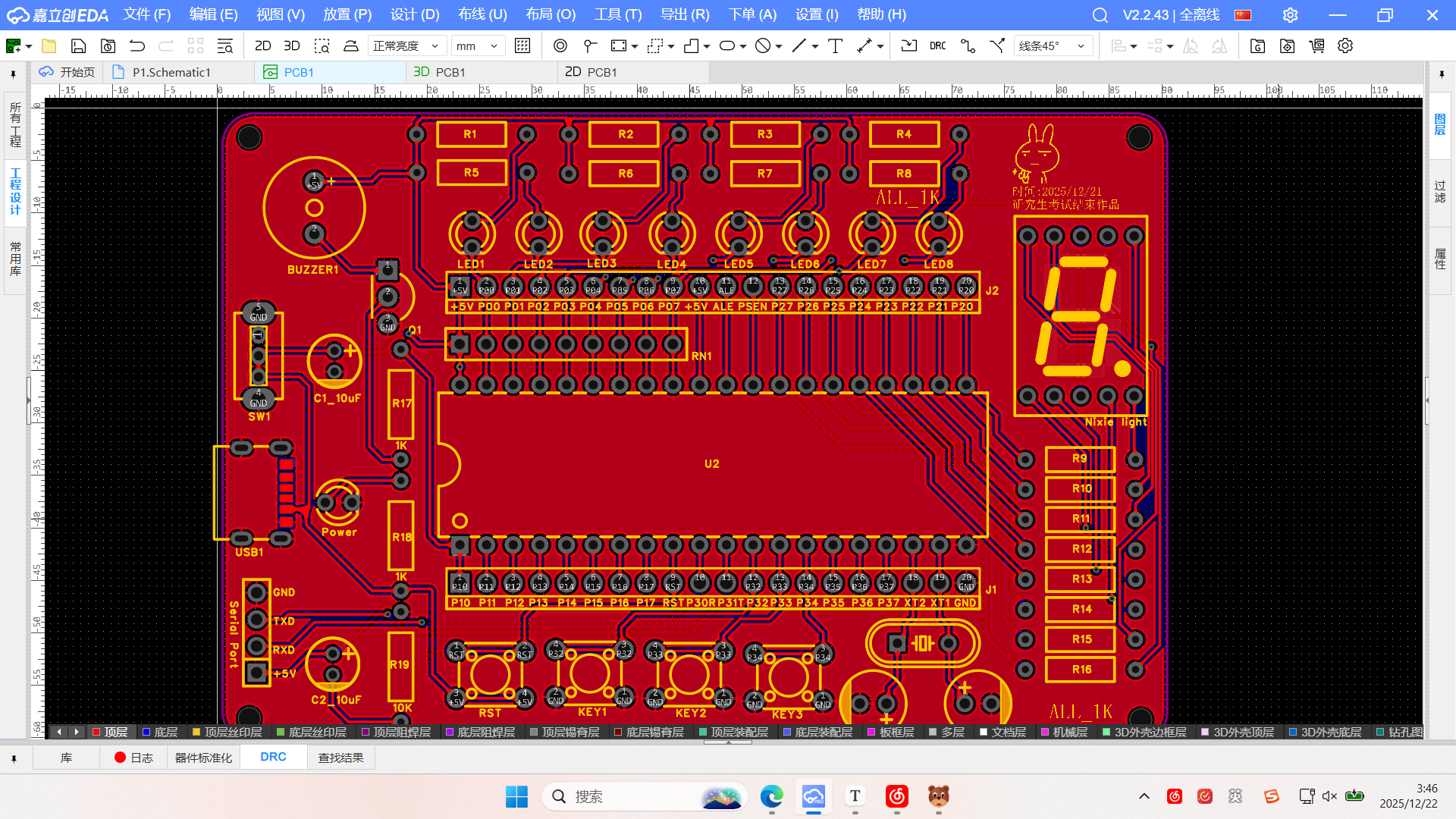 最后说句,嘉立创可以免费打印样板,学习过程成就满满。