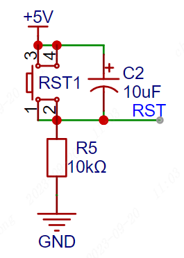 STC89C52RC是高电平进入复位模式,低电平正常工作,分析复位电路,一上电,RST按键没有按下,此时,+5V给C2电容充电,电容相当于导线,RST高电平,系统进行复位,随着电容接近充满,电位与+5V一直,此时没有电流流过,RST被R5下拉到GND,进入正常工作模式。如果手动按下RST复位按键,此时,电容会进行放电,就算电容放电完成,+5V也会流过按键到RST,RST高电平进入复位按键,当按键松开时有恢复到前面的过程。