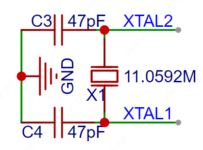 晶振作为主控电路的心脏,为主控电路提供稳定的时钟源,驱使代码稳定、准确的运行。晶振的频率根据官方数据手册描述,能够支持4M48M,不同的频率,不同品牌的晶振,负载电容也不相同,需要根据实际情况选择,一般情况下,12M25M晶振负载电容选择22~47PF左右是比较合适的。
