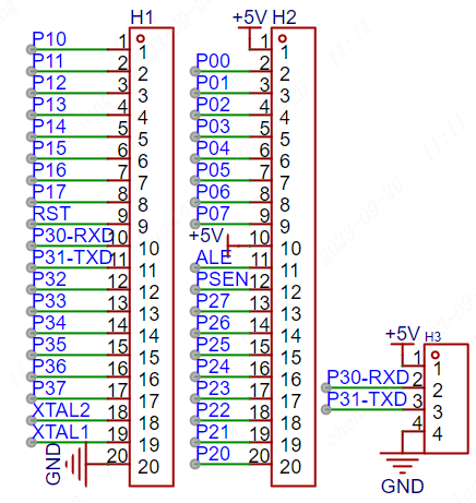 本次STC89C52RC项目设计,仅用到了单片机部分IO引脚用于学习,嵌入式是一门非常庞大的系统,并不仅仅上述这些,为了方便日后拓展学习使用,不用重复画板,加入2.5420P排针接口,方便杜邦线插拔进行拓展连接。同时,通过2.544P排针接口,将下载接口和电源接口引出,用于后续程序下载调试使用。