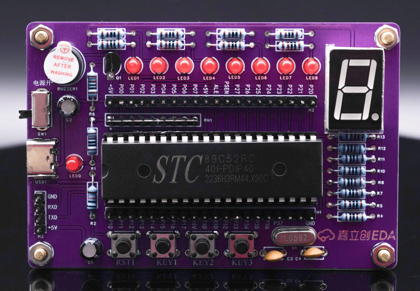 STC89C52RC单片机作为8位8051系列的元老,凭借其良好的电气特性和价格一直占据着8位单片机的市场,作为新手入门学习嵌入式开发是非常不错的选择,本身IO引脚丰富,定时器、串口、中断、ADC等外设也齐全,同时直接操作寄存器的代码能够帮助学生更加深入的了解单片机的工作原理,对嵌入式学习非常有帮助。