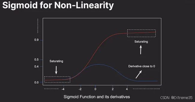 梯度消失问题 :当输入 x x x 的绝对值很大时(无论是正无穷还是负无穷),Sigmoid 的梯度(导数)都会非常接近 0。