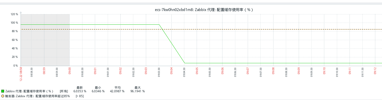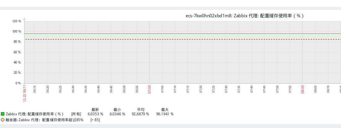 告警:ecs-7kw0hn02xbd1m8: Zabbix 代理: 配置缓存使用率(%)> 85%