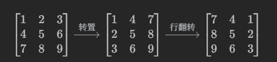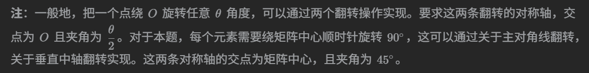 (5)(i,j)->(j,n - 1 - i)可以通过两次翻转操作得到:(i,j)->(转置)(j,i)->(行翻转)(j,n - 1 - i)。