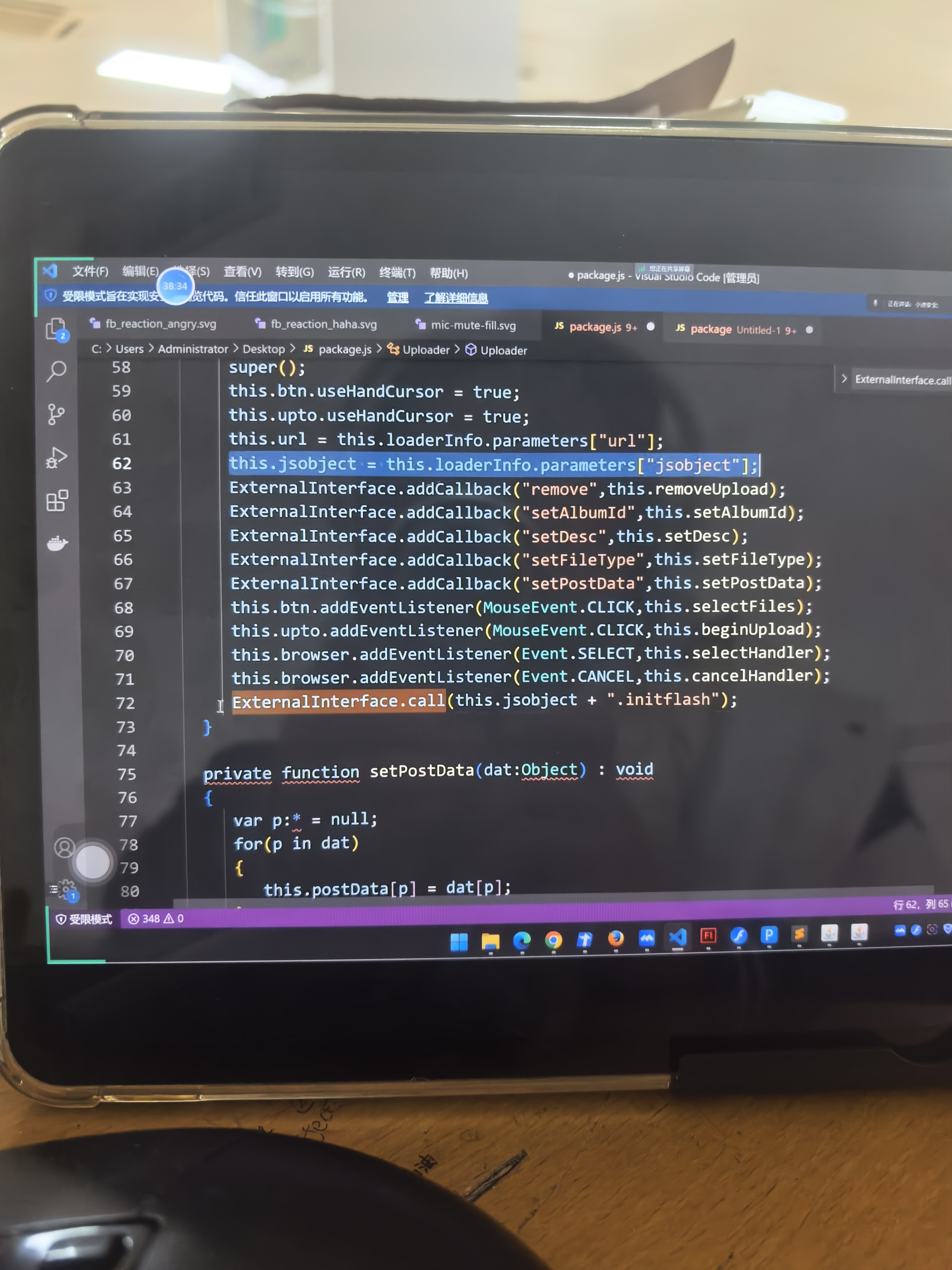 ExternalInterface.call(m) 的行为不是"直接执行 m 里的代码字符串",而是将 m 作为「要调用的JS函数名」来执行。