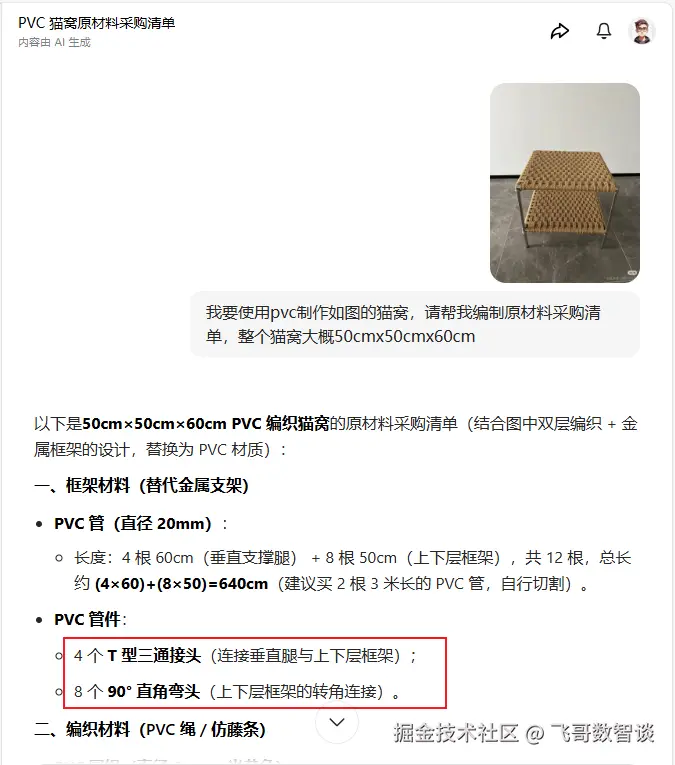 我要使用pvc制作如图的猫窝,请帮我编制原材料采购清单,整个猫窝大概50cmx50cmx60cm