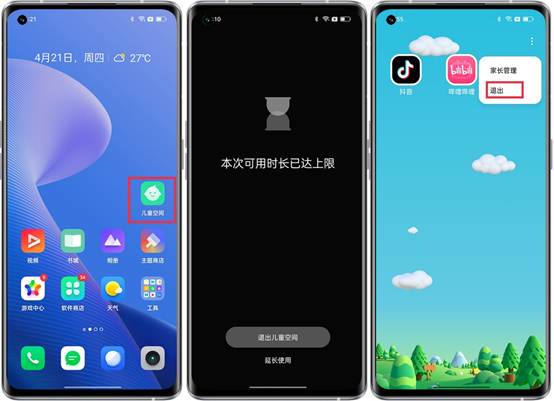 家长将自己的Realme手机设定好【儿童模式】再交给孩子,那么孩子就只能运行允许访问的应用列表中的应用。家长可以设定的每次可使用时长,到达使用时长后,系统将自动锁定手机,需要验证锁屏密码才可重新进入桌面。