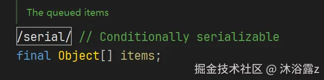 简单说:final 局部变量相当于给 items 数组拍了一张 "快照",确保整个 enqueue 方法执行期间,使用的是同一个数组引用,不会因为 JVM 优化而读取到错误的数组对象。
