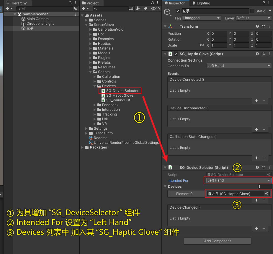 首先配置SDK:Unity SenseGlove力反馈手套 sdk 笔记