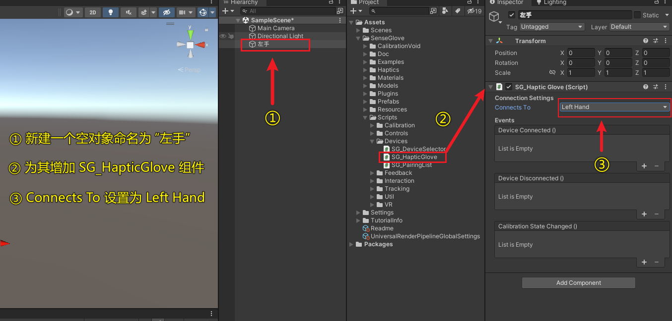 一、新建空对象,增加SG_HapticGlove组件