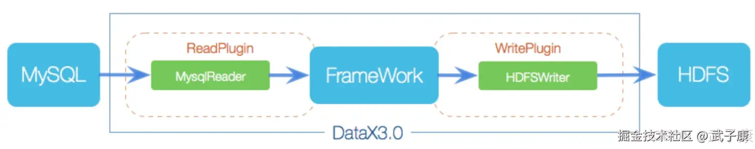 - 接入层:各数据源通过插件化方式接入DataX核心