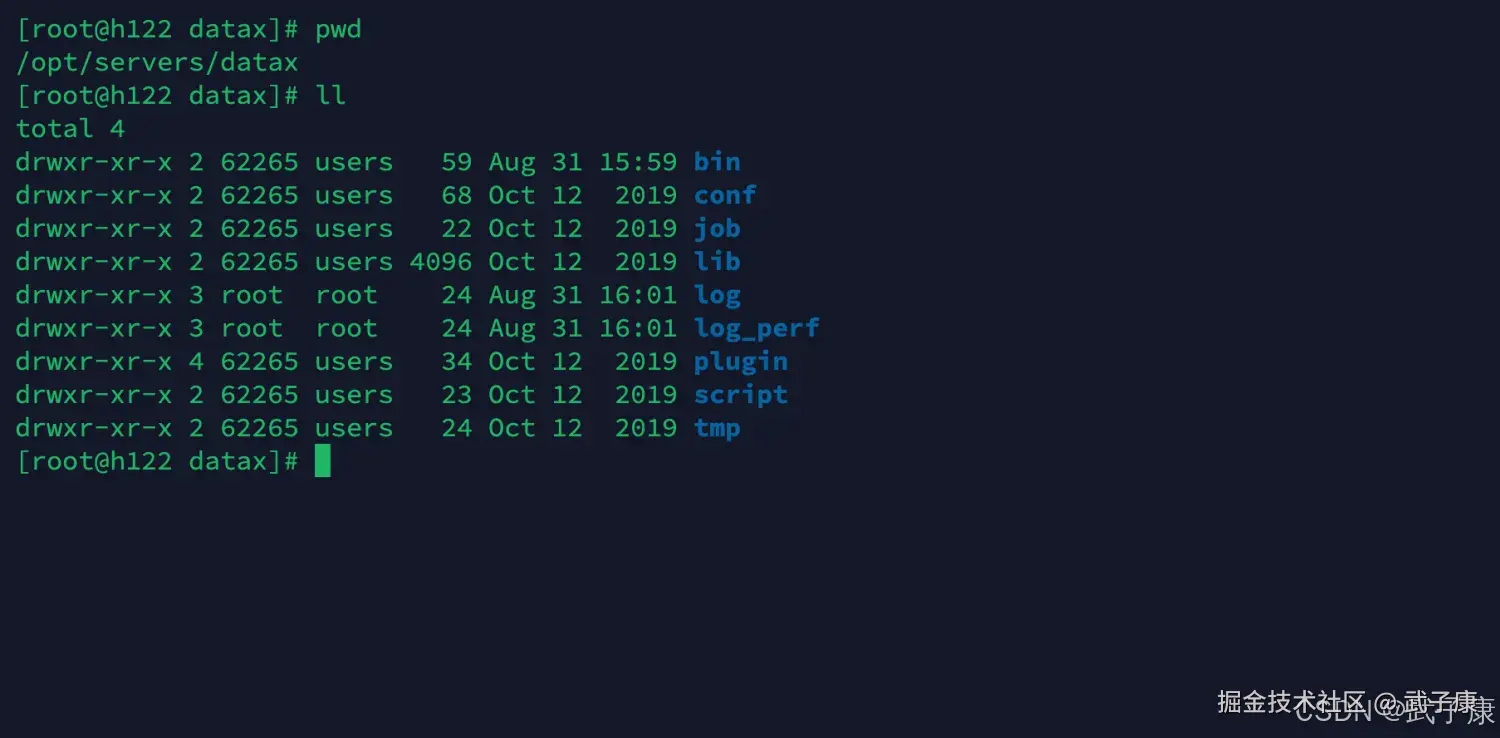 DataX 目录或目标目录无权限 | ls -l / 查看目标路径属主与权限 调整目录权限/属主;目标路径提前创建;避免用无权限用户写入 |