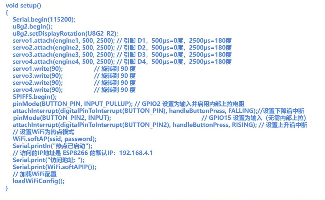 attachInterrupt(digitalPinToInterrupt(BUTTON_PIN),handleButtonPress,FALLING);//监听GPIO2 设置下降沿中断