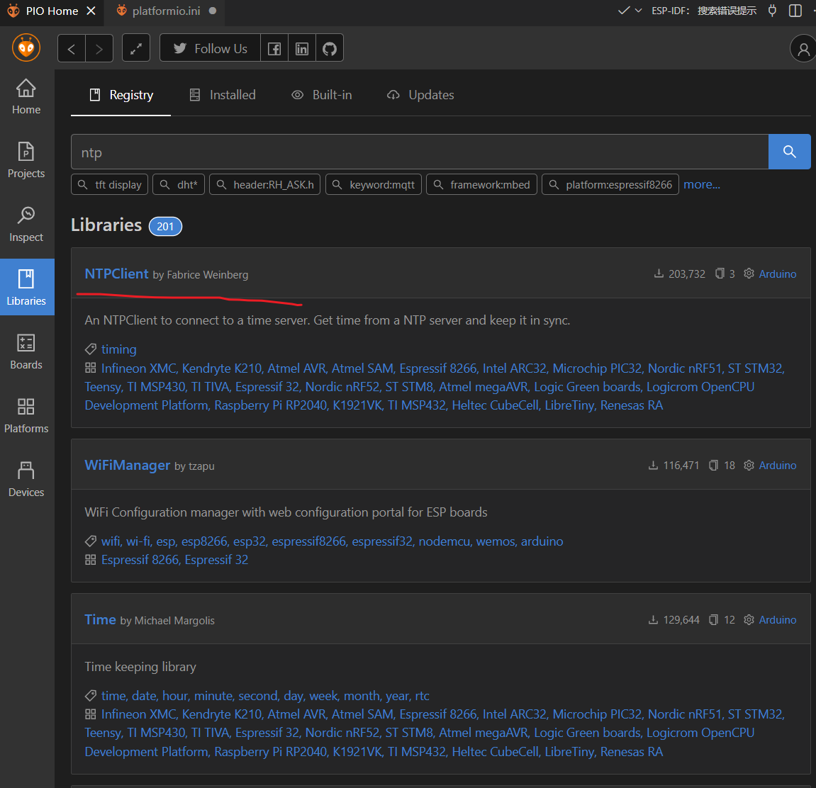 NTPClient timeClient(ntpUDP,"ntp1.aliyun.com",8*3600,60000); //阿里云的服务器 8*3600ms时差 每隔60s刷新一次