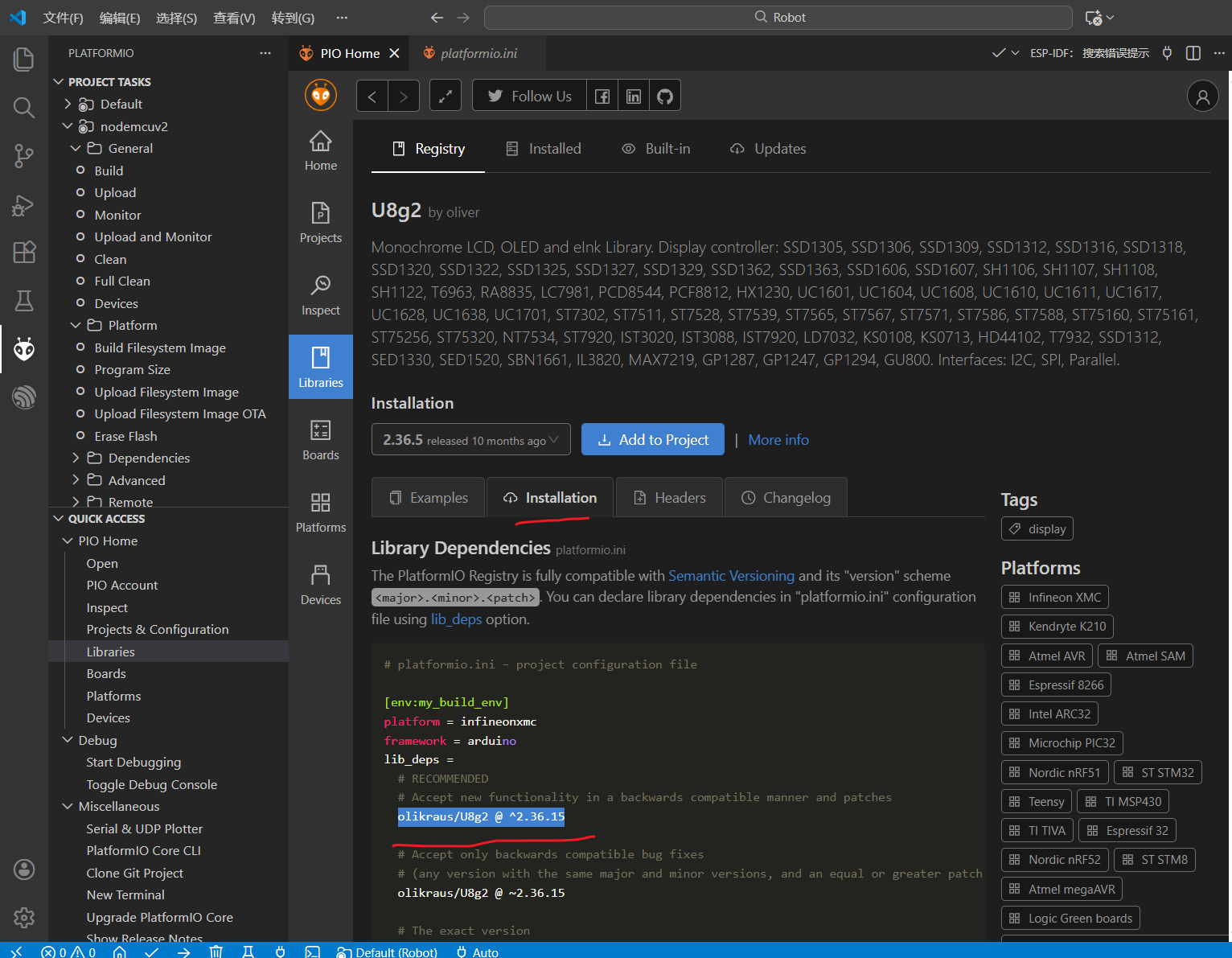 u8g2.setDisplayRotation(U8G2_R2);//屏幕的旋转角度 U8G2_R2表示180度