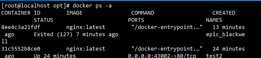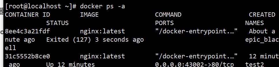 docker ps -a输出(状态为 Created)