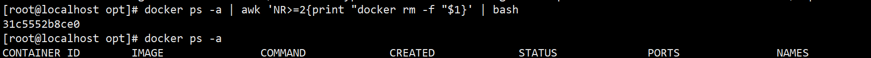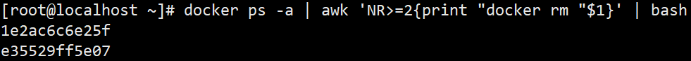 docker rm -f $(docker ps -aq)docker ps -a | awk ... | xargs docker rm