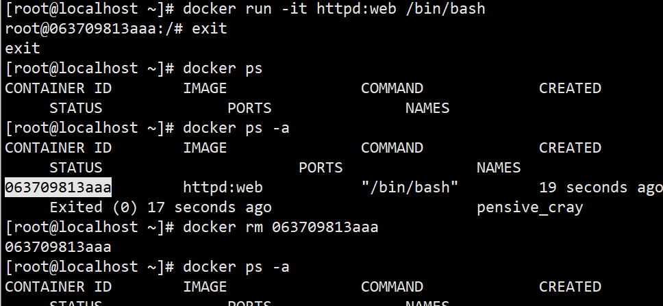 docker run -it centos:7 bash退出 bash → 容器会停(PID=1 结束)docker exec只能进入运行中 容器,需先docker startdocker rm只能删已停止容器(运行中要先 stop 或用-f)- 批量删除命令只允许实验环境,不要在生产机乱用