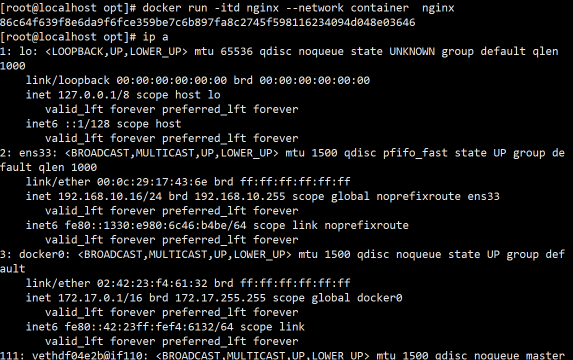 操作 3.4:对比两个容器的网络
