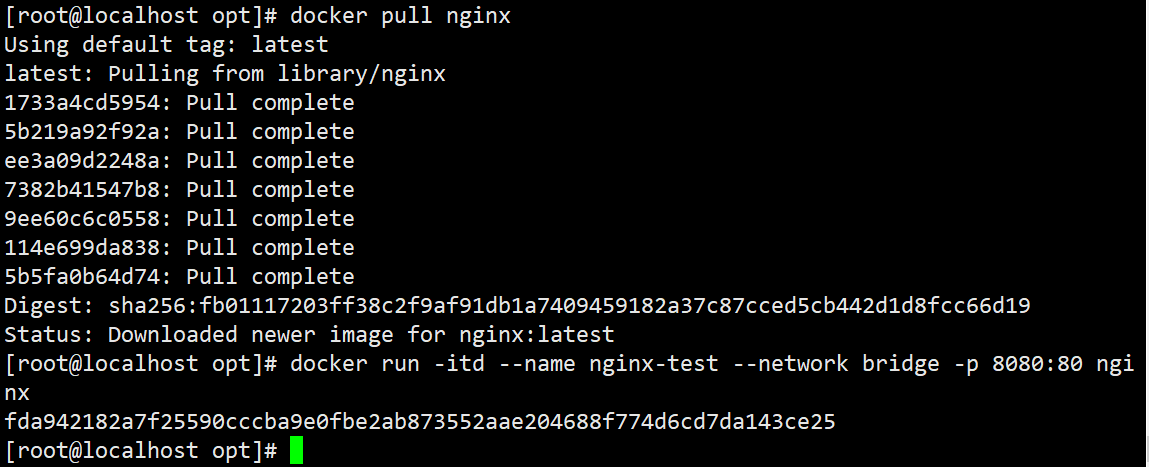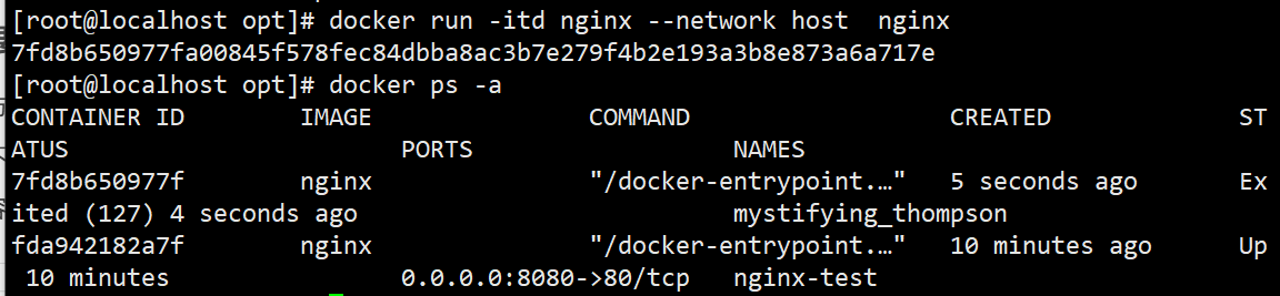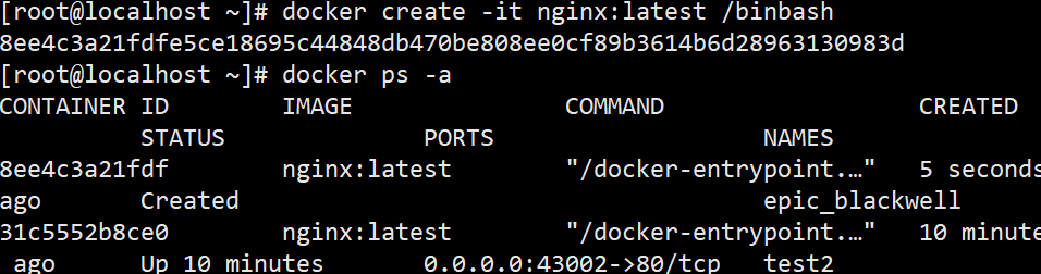 docker create -it nginx:latest /bin/bash(或按环境可用镜像) - 确认容器状态是