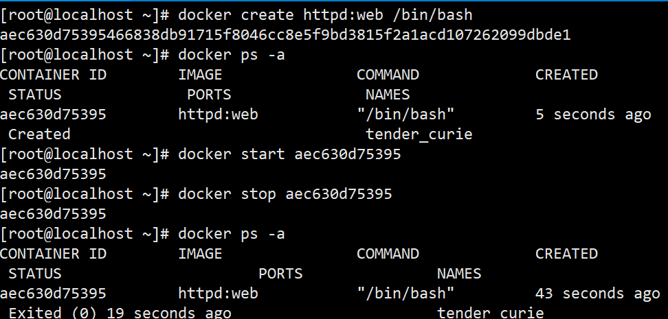 操作 2.1:使用 docker create 创建容器(默认停止)