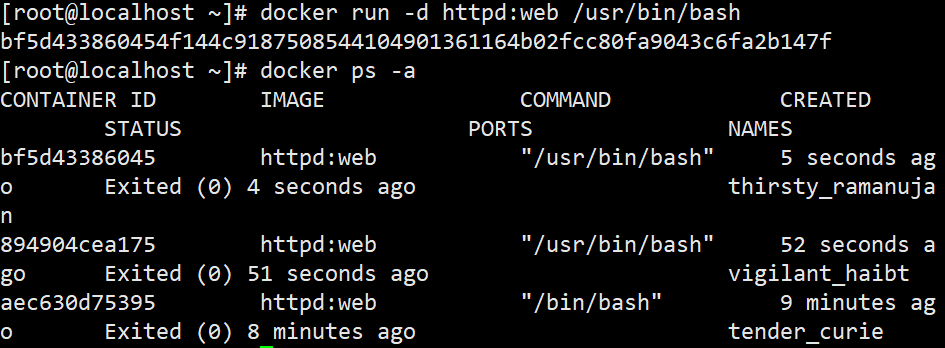 - docker run 创建+启动合并 ,并且后台持续运行