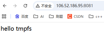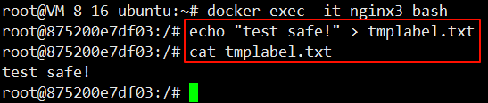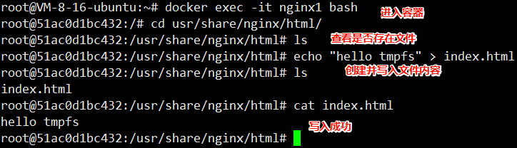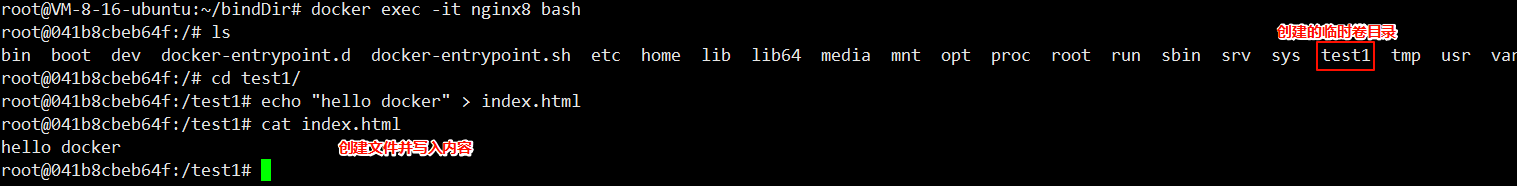 1、创建普通容器,绑定临时卷。并在容器内的临时卷目录写入一个文件