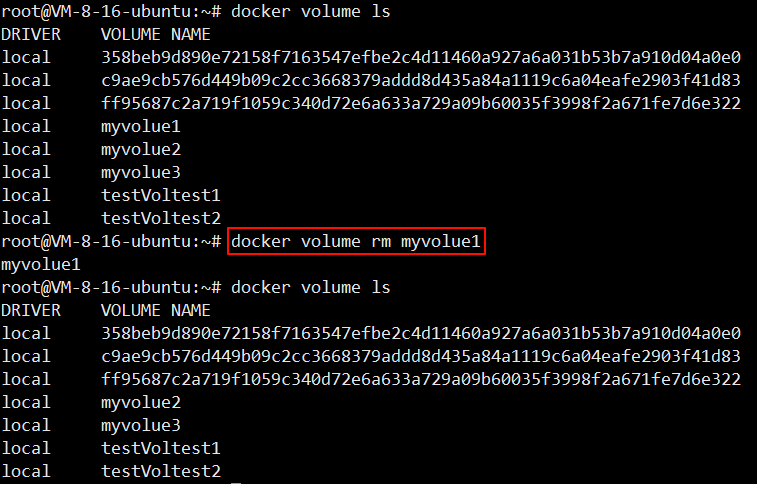 docker volume rm [OPTIONS] VOLUME [VOLUME...]