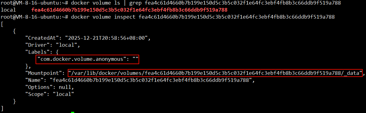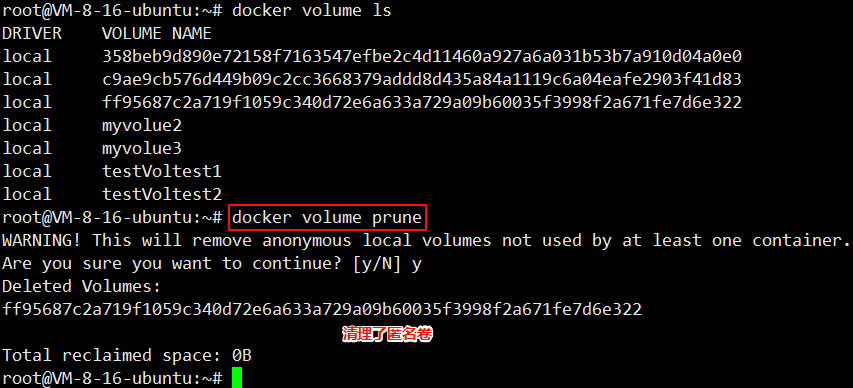 docker volume prune 删除不使用的本地卷,会对匿名卷进行清理,对于命名卷则不会进行清理