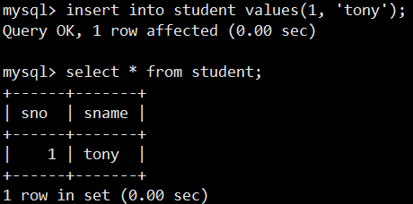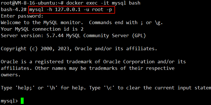 2、进入mysql容器,进行数据业务操作。建数据库、建表、新增数据