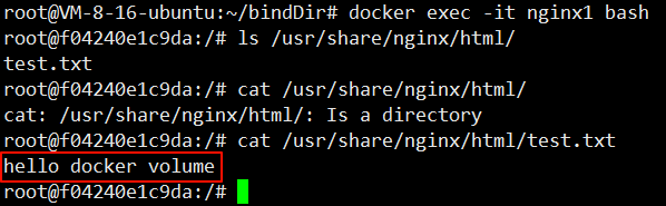 其实对文件的操作都会反应到宿主机上,而且在宿主机上是可以看到文件的内容。