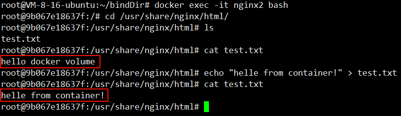 1、启动两个绑定卷,都绑定到宿主机的同一个目录