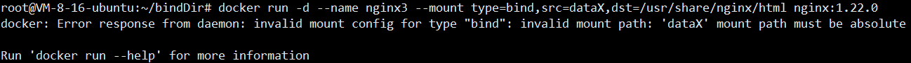 执行命令 docker run -d --name nginx3 --mount type=bind,src=dataX,dst=/usr/share/nginx/html nginx:1.22.0