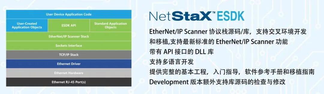 其中,核心产品NetStaX EtherNet/IP stack (ESDK) 已成为众多自动化研发团队实现EtherNet/IP协议的首选工具。